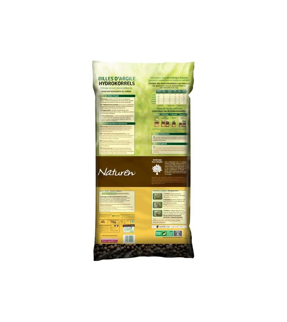 Naturen billes d’argile 40l, protege du gel et permet une Ă©conomie d’arrosage, support de culture nf u 44 – 551 argile expansĂ©e calibre 8 – 16 mm, produit naturel, utilisable en agriculture biologique, fabriquĂ© en france informations rĂ©glementaires