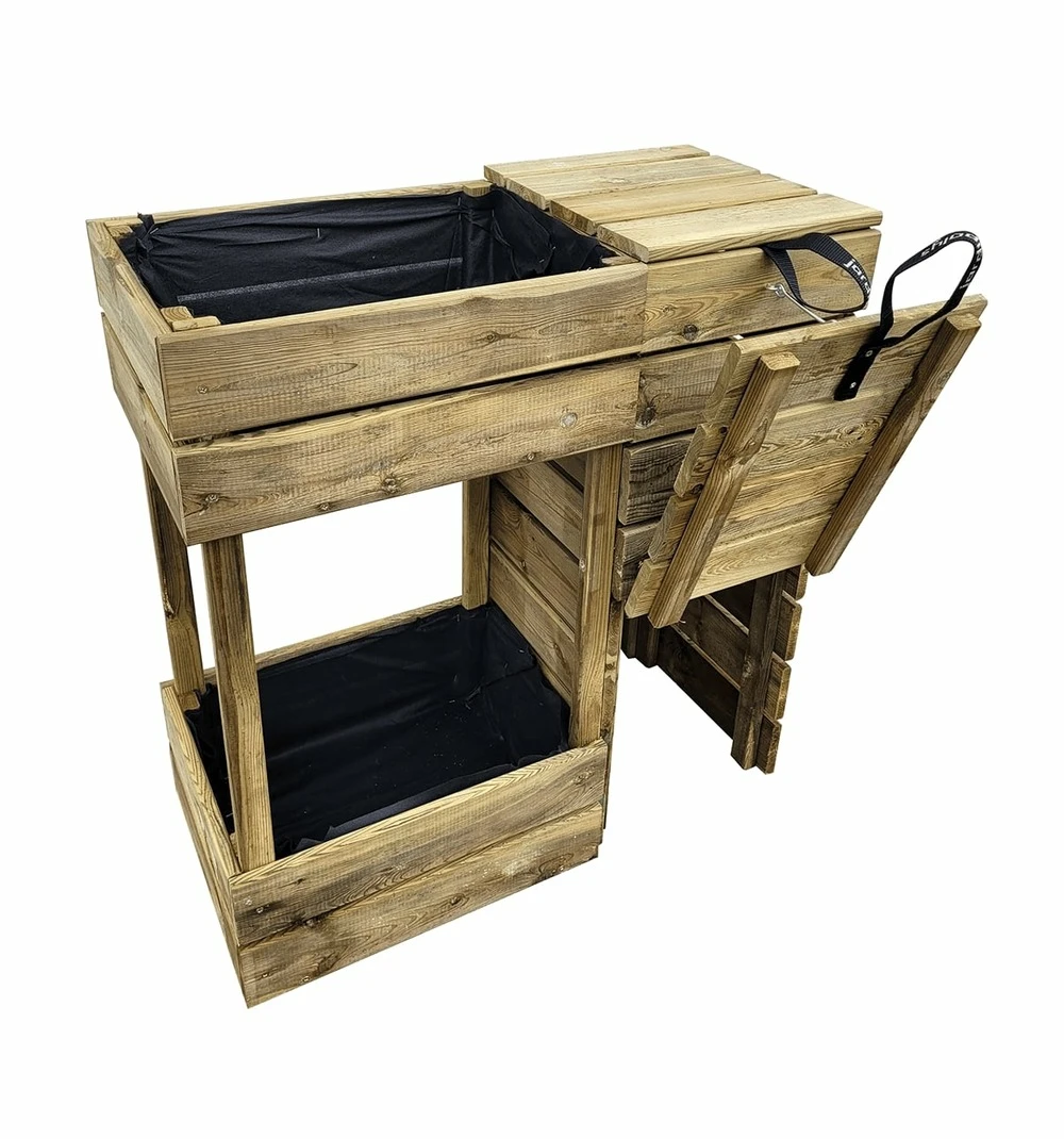 petit et pratique, ce produit 2 en 1 de chez jardipolys vous propose une partie sous forme de bac de compostage, et une autre partie qui dispose de deux bacs à fleurs. Le composteur vous simplifiera la vie, il est doté de deux trappes : l’une en-haut pour déposer vos déchets organiques et l’une en bas pour récupérer votre compost. Ce bac à compostage dispose également de loquet afin d’en faciliter l’utilisation. Quant aux bacs à fleurs, ce produit en propose deux : l’un au sol et l’autre surélevé. Pratique, vous pourrez y planter des fleurs ou même des petits légumes sur une surface réduite. N’hésitez pas à utiliser le compost afin de nourrir vos plantes avec un engrais naturel !