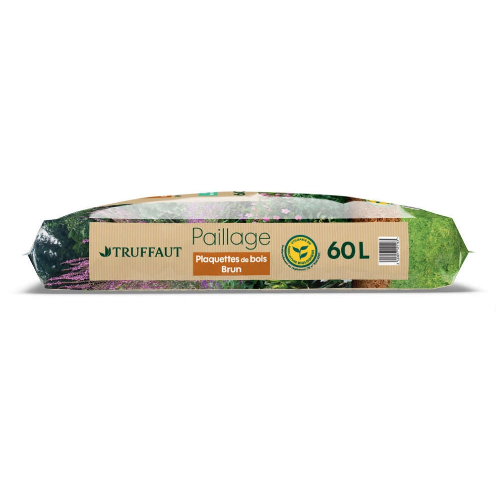 Le bois étant peu altérable, ce paillage est doté d’une très grande longévité avec une durée de vie supérieure à 3 ans. Cette longévité et son coté esthétique rendent la plaquette idéale pour le paillage de masse des arbres, arbustes, rosiers et jeunes plants mais aussi des allées et bordures. Sa stabilité et sa densité permettent une bonne tenue au sol et limitent nettement l’érosion et la levée des mauvaises herbes. Le bois utilisé est prélevé dans des zones forestières contrôlées et certifiées PEFC pour répondre aux critères de gestion durable de la forêt. La plaquette n’a subi aucun ajout ni traitement chimique.