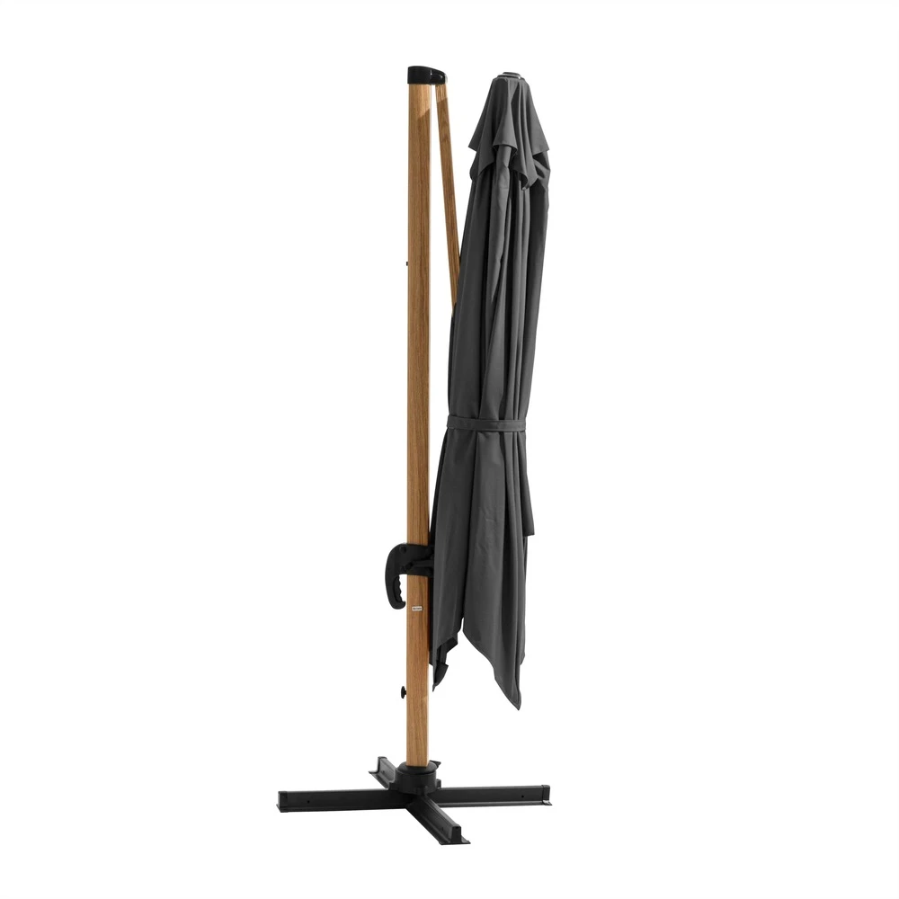 doté d’un look soigné et naturel, le parasol déporté rotatif et inclinable brescia séduit par sa haute qualité et son sens pratique. Construit sur une structure articulée en aluminium, il possède un mât central rotatif à 360° et un mât déporté inclinable, qui permettent de l’orienter à tout moment afin d’offrir une protection maximale contre le soleil. Simple à utiliser et facile à vivre, sa toile en polyester se déploie via une poignée et, avec 3 m de côtés, fournit jusqu’à 12 m² d’ombrage. Traitée avec une enduction pvc pour l’imperméabilité et une meilleure résistance aux rayons uv, elle ne risque pas de se décolorer. L’ensemble de la structure en aluminium bénéficie d’une finition antirouille à la peinture qui imite l’aspect du bois. Inclus, 4 dalles lestées pour une utilisation immédiate. La notice et la visserie pour le montage sont incluses.