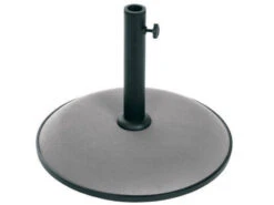 Pied de parasol en béton, diamètre : 50 cm. Hauteur : 38 cm. Poids : 25 kg. Pour mats de diamètre 35 mm à 55 mm. Molette de serrage et bagues de réduction. Existe en 3 coloris / à lester:non / convient pour:parasol droit / diamètre du mât:35 – 48 mm / dimensions (l x l x h):45 x 45 x 37 cm / forme:rond / marque:hesperide / matière(s):béton / acier / poids:25 kg