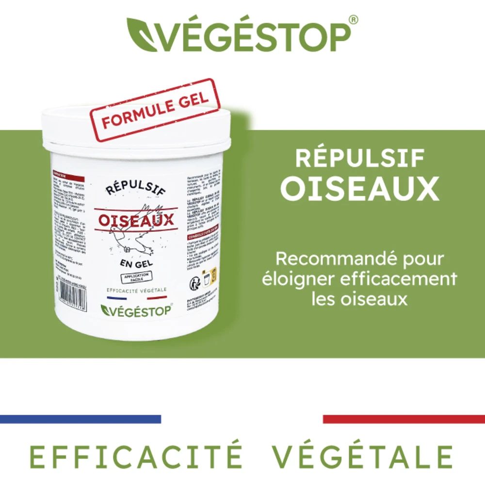 Le répulsif oiseaux en gel vegestop est un répulsif composé d’extraits végétaux et d’huiles essentielles. Le répulsif oiseaux en gel vegestop offre une alternative aux répulsifs visuels et sonores, en empêchant les volatiles de se poser grâce à l’action conjuguée de ses principes actifs. Le répulsif oiseaux en gel vegestop est recommandé pour les balcons, les terrasses, les bords de fenêtres, les toitures, les monuments, etc.