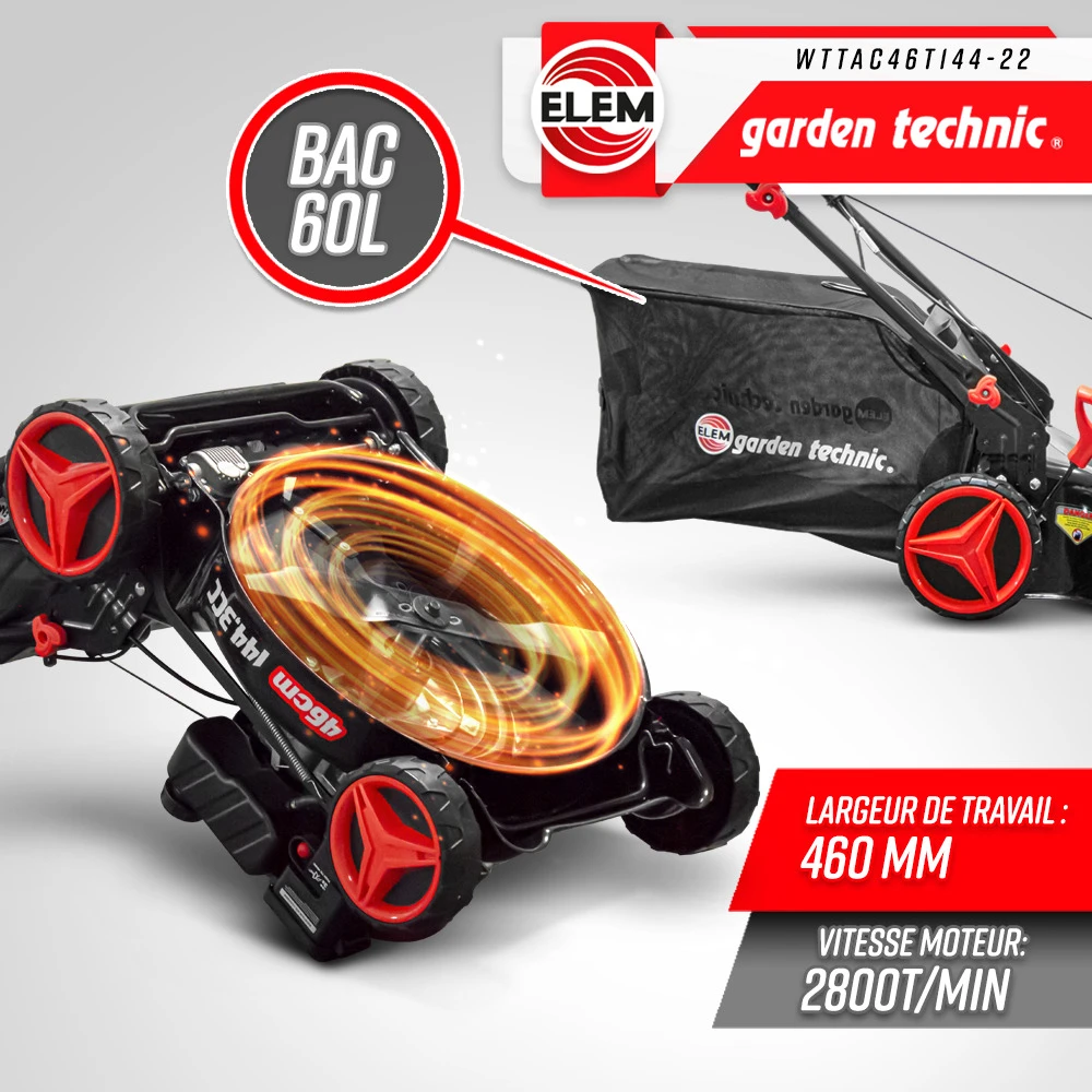 avec un carter en acier, cette tondeuse elem garden technic résiste à des conditions compliquées et bénéficie d’une longue durée de vie et elle possède de grandes roues afin de vous offrir une meilleure maniabilité de la machine.