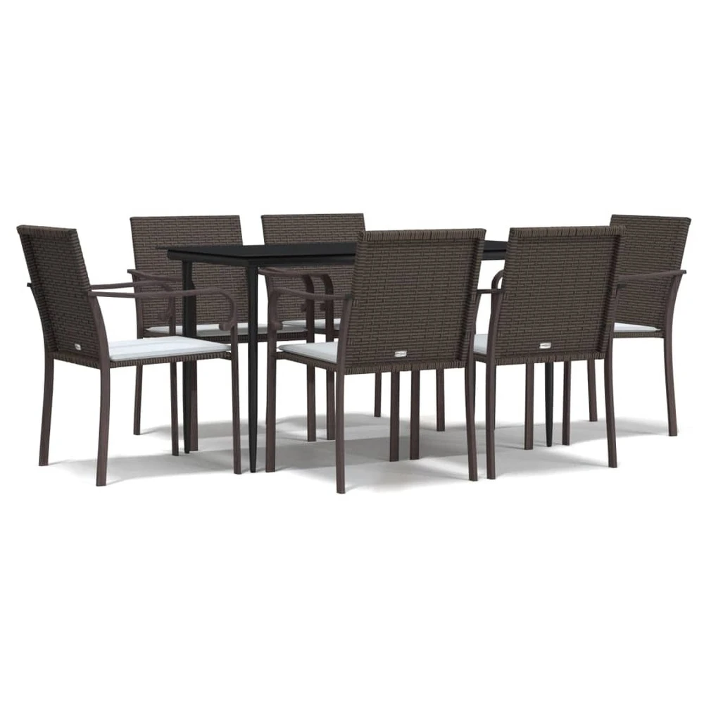 Cet ensemble à manger de jardin, combinant à la fois style et fonctionnalité, est sûrement destiné à être la pièce maîtresse de votre jardin, terrasse et de tout autre espace de vie. Matériau résistant aux intempéries : la résine tressée, également connue sous le nom de rotin poly, résiste aux intempéries et est facile à nettoyer. Elle reste belle à l’extérieur pendant une longue période. Elle offre une excellente qualité, commodité et un aspect esthétique.cadre robuste et stable : les cadres en acier rendent l’ensemble à manger robuste et stable pour une utilisation quotidienne à l’extérieur.dessus de table pratique : le plateau lisse de la table à manger est en verre trempé facile à nettoyer avec un chiffon humide. De plus, il offre un excellent support pour contenir vos repas, boissons et autres objets décoratifs.assise confortable : la chaise de salle à manger est conçue avec des accoudoirs pour vous offrir une expérience d’assise confortable. Le coussin de siège épais et rembourré offre un confort ultime pendant votre temps d’assise. Remarque :pour que vos meubles d’extérieur restent beaux, nous vous recommandons de les protéger avec une housse imperméable.